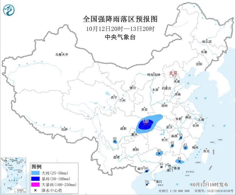 央视新闻:中央气象台将于10月12日18:00继续发布暴雨蓝色预警。预计10月12日20:00至10月13日20:00,陕西南部、四川东北部、湖北中北部、河南西南部等地部分地区有大暴雨。其中,重庆北部等地局地大暴雨(100~120毫米)。此外,广东东部和西南部、广西南部、海南岛西部、湖南南部、江西南部和东部、福建西部等地局地有暴雨或暴雨(50~80毫米)。上述部分地区伴有短时大暴雨(最大小时降雨量20~40毫米,局地可达50毫米以上),局地有暴风雨、大风等强对流时期。 上一篇:融合——包括团结奋斗的思想基础——习近平文