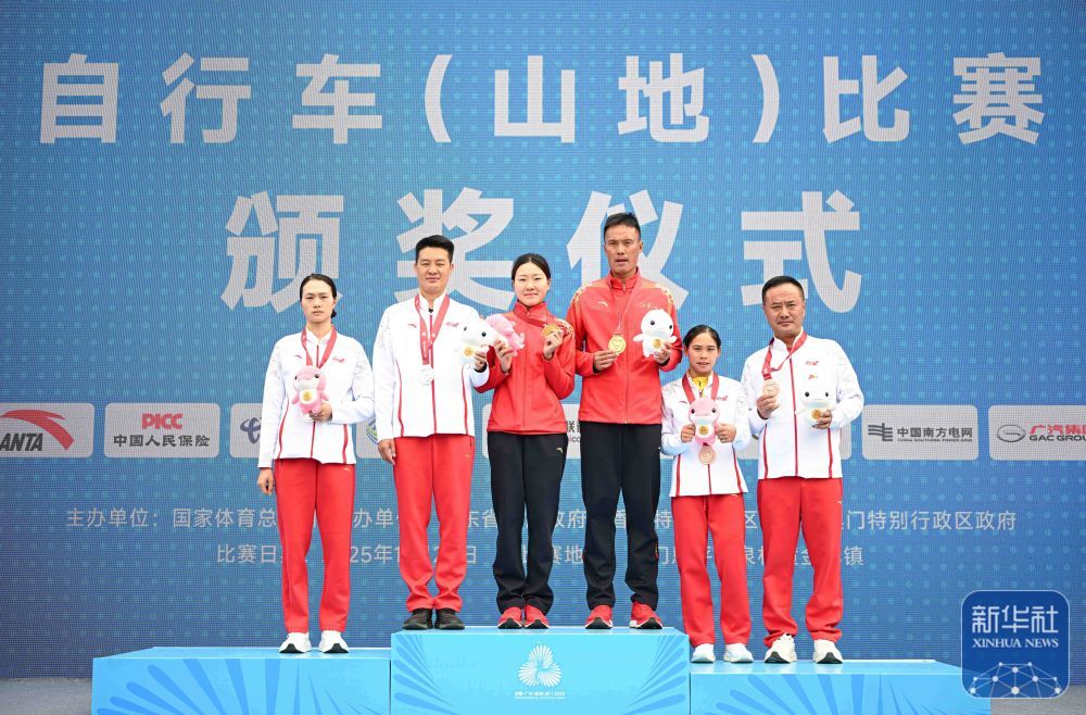 11月20日,在广东江门举行的第十五届全运会女子山地自行车越野赛决赛中,江苏队选手韦倩倩获得冠军,云南队选手吴志凡、梁正兰分别获得亚军和季军。 ↑ 冠军江苏队选手魏倩倩(左三)、亚军云南队选手吴志凡(左)、季军云南队选手梁正兰(右二)在颁奖典礼上与教练合影。 ↑ 冠军江苏队球员魏倩倩(左)与教练在颁奖典礼上。 ↑ 亚军云南队选手吴志凡(左)与教练在颁奖典礼上。 ↑ 云南队季军梁正兰(左)与教练在颁奖典礼上。 ↑ 参赛者卡乐出发↑ 比赛中云南队球员梁正兰、江苏队球员韦倩倩、云南队球员吴志凡(从前到后)。 ↑ 云南队球员吴志凡,江苏队球员韦倩倩和云南队球员梁正兰(从前到后)在比赛中。 ↑ 江苏队球员魏倩倩在比赛中。 ↑ 江苏队球员魏倩倩在比赛中。 ↑ 云南队球员吴志凡(右)与江苏队球员韦倩倩比赛中。 ↑ 云南队球员吴志凡(前)与江苏队球员韦倩倩在比赛中。 ↑ 云南队球员吴志凡在比赛中。 ↑ 云南队球员梁正兰在比赛中。 ↑ 竞赛竞赛。 ↑ 云南队球员吴志凡(右)与江苏队球员韦倩倩比赛中。 ↑ 香港球员关志军在比赛中。新华社记者 陈忠浩 摄 上一篇:【世界论】从“拜鬼”到煽动跨界暴乱,高适的