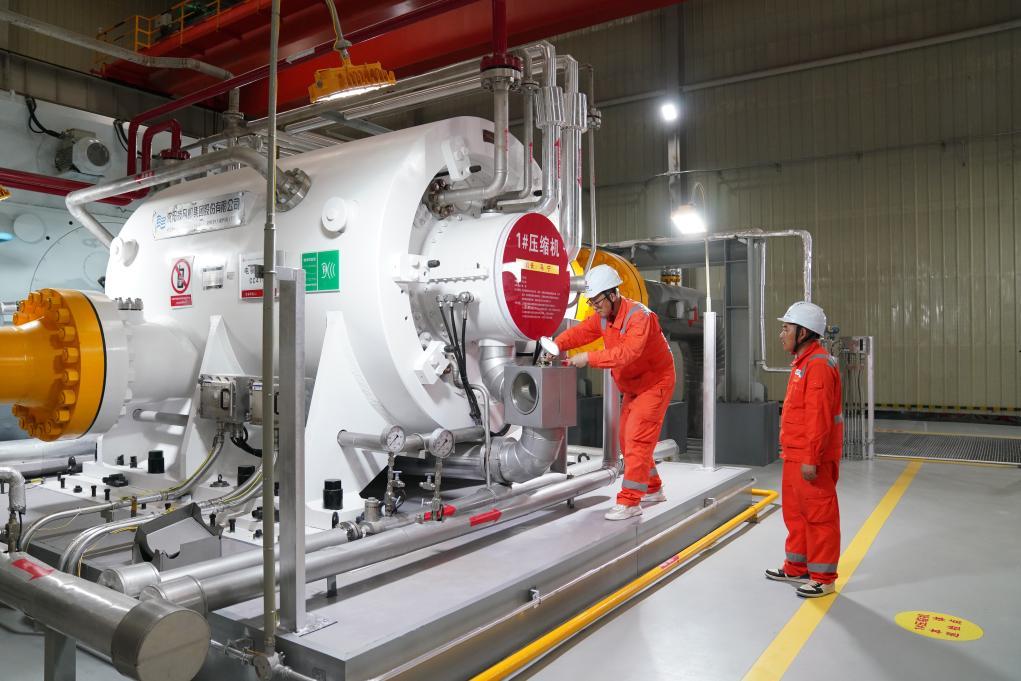 2025年7月9日,在“北气南输”能源通道黑河首站压缩机房,综合检修工对压缩机主仪表进行维修。新华社记者 王松 摄